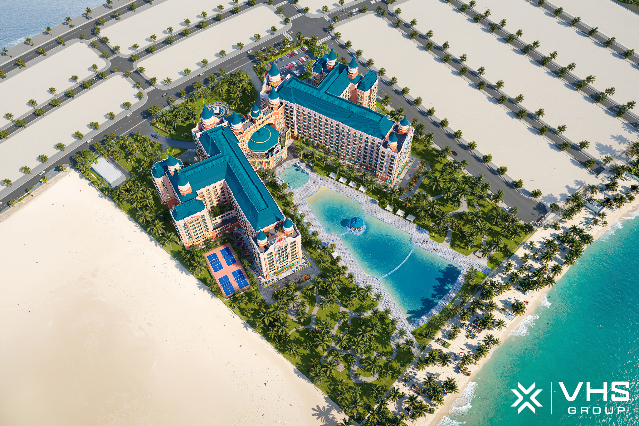 Tổ hợp khách sạn nghỉ dưỡng quy mô lớn nhất Việt Nam với khoảng 7.000 phòng được xem là điểm đến mang tầm vóc quốc tế, kiến tạo trải nghiệm nghỉ dưỡng chưa từng có. Nơi đây quy tụ hơn 20 thương hiệu khách sạn danh tiếng toàn cầu, từ những chuỗi cao cấp đến siêu sang, đáp ứng đa dạng nhu cầu của du khách từ nghỉ dưỡng, hội nghị, giải trí cho đến ẩm thực quốc tế. Với thiết kế hiện đại hòa quyện cùng cảnh quan thiên nhiên độc đáo, tổ hợp không chỉ mang lại không gian lưu trú đẳng cấp mà còn trở thành trung tâm du lịch – giải trí – nghỉ dưỡng hàng đầu khu vực, hứa hẹn thu hút hàng triệu lượt khách trong và ngoài nước mỗi năm, góp phần nâng tầm vị thế du lịch Việt Nam trên bản đồ thế giới.